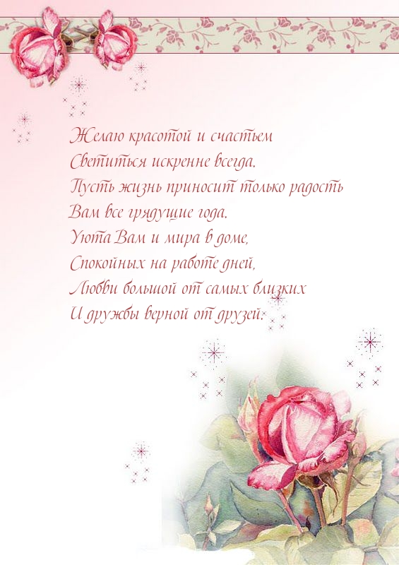 • Женского счастья, событий прекрасных. Здоровья отличного, достатка