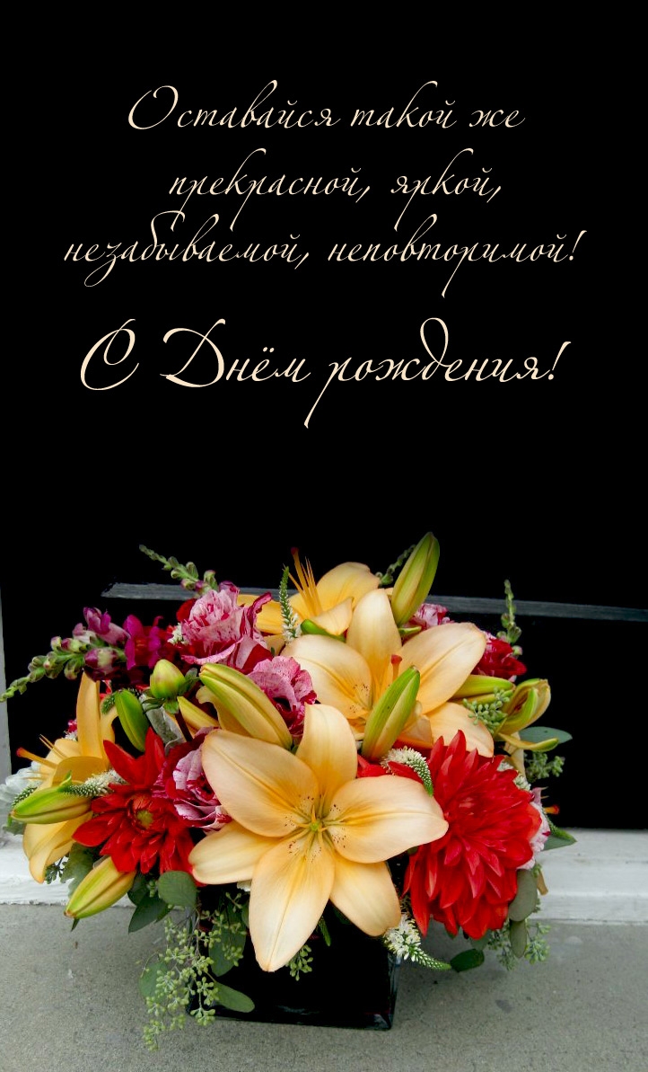 • Оставайся такой же прекрасной, яркой, незабываемой! С Днём рождения!