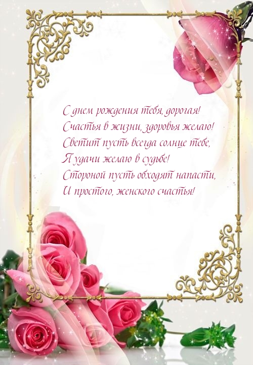 • С днем рождения тебя, дорогая! Счастья в жизни, здоровья желаю!