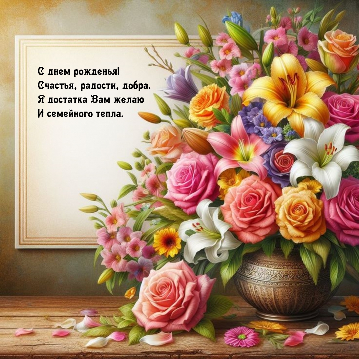 • С днем рожденья! Счастья, радости, добра. Я достатка Вам желаю