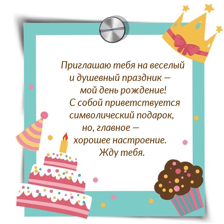 • Приглашаю тебя на веселый и душевный праздник — мой день рождение!