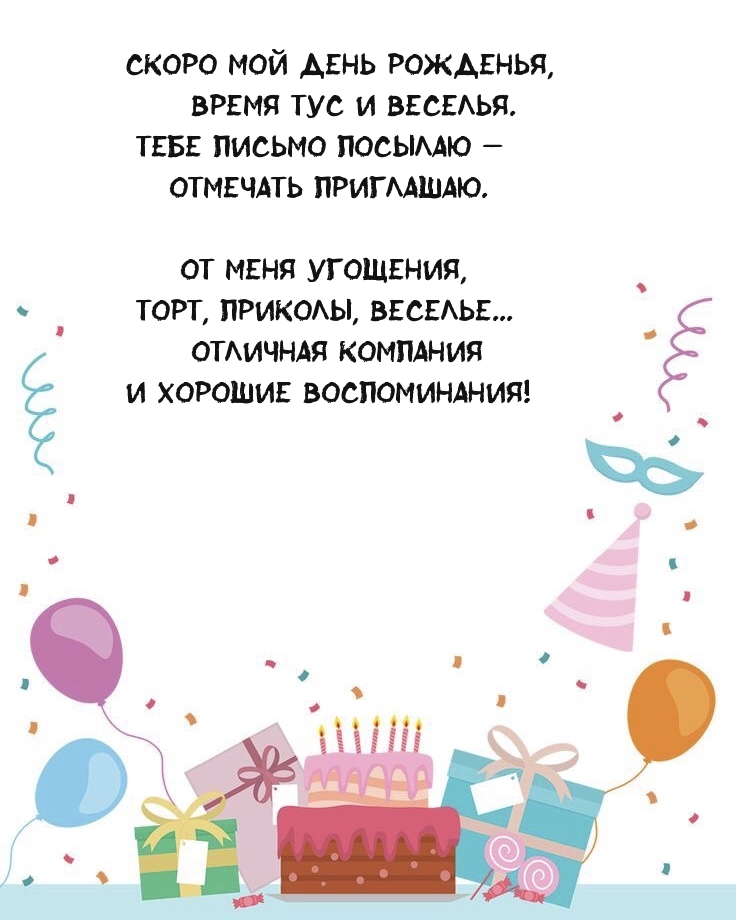 • Приглашаю тебя на веселый праздник — мой день рождения!